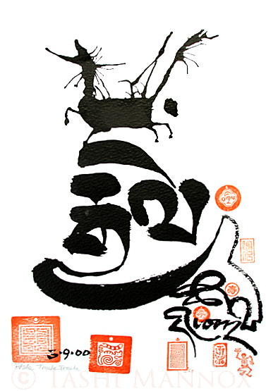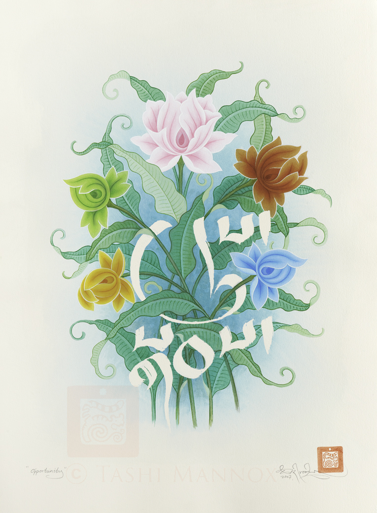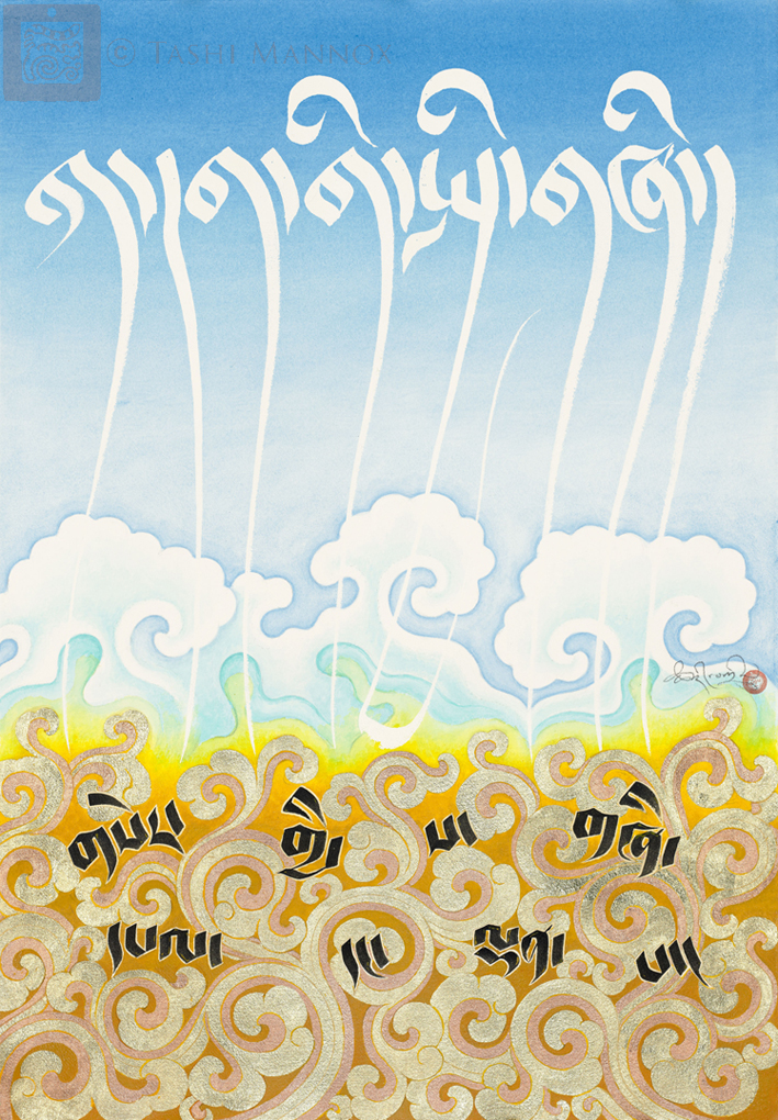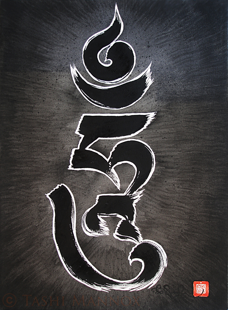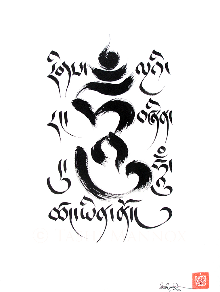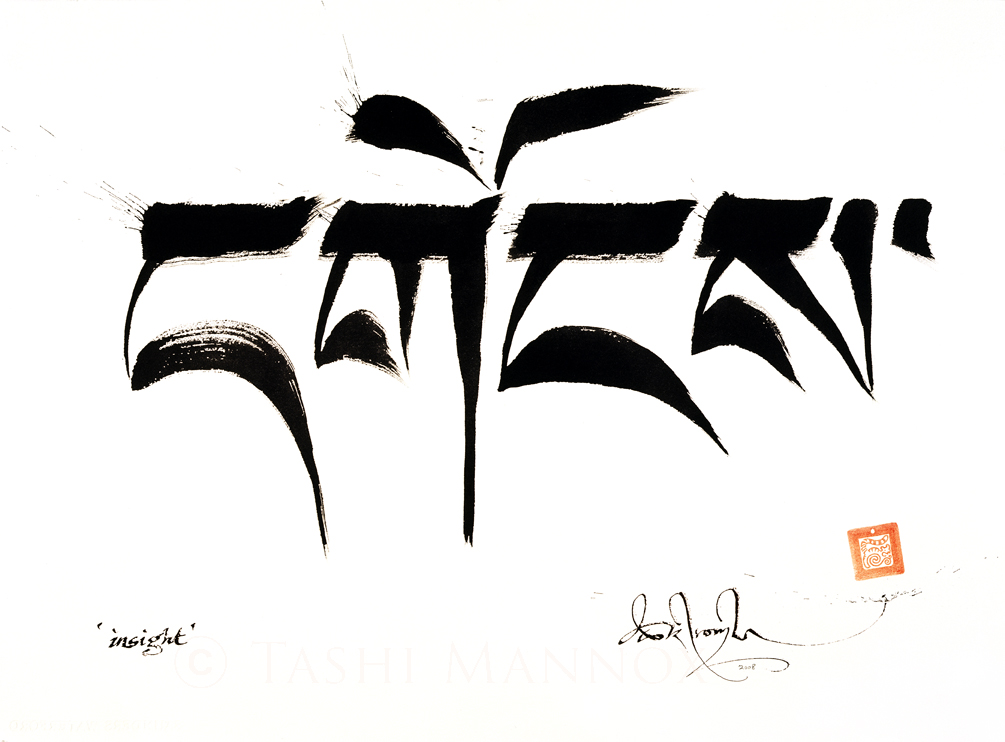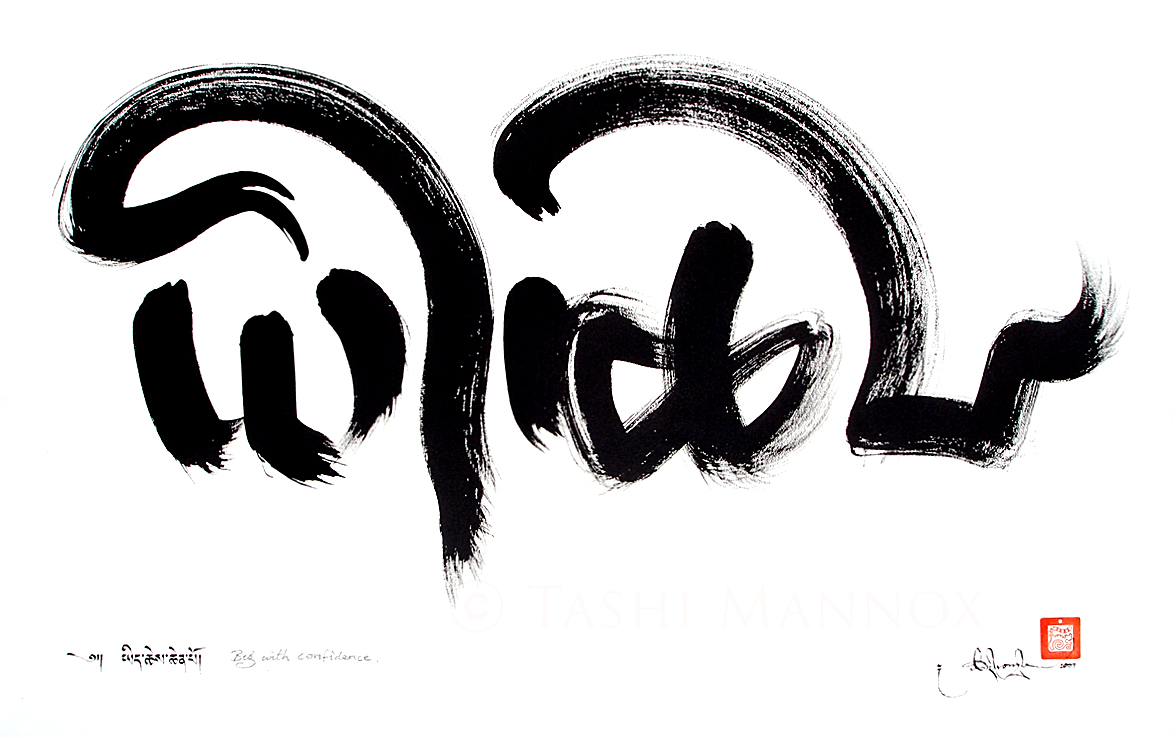 In honoring contemporary contexts and concerns, some of his designs are presented as sacred tattoos. With certain commissioned work he offers the option of including bespoke seals that are specific to the calligraphic project and its patron. In all cases Tashi's art is an expression of his long and devoted meditative practice and spiritual realization, such that his art energetically transmits the Tibetan Buddhist View.