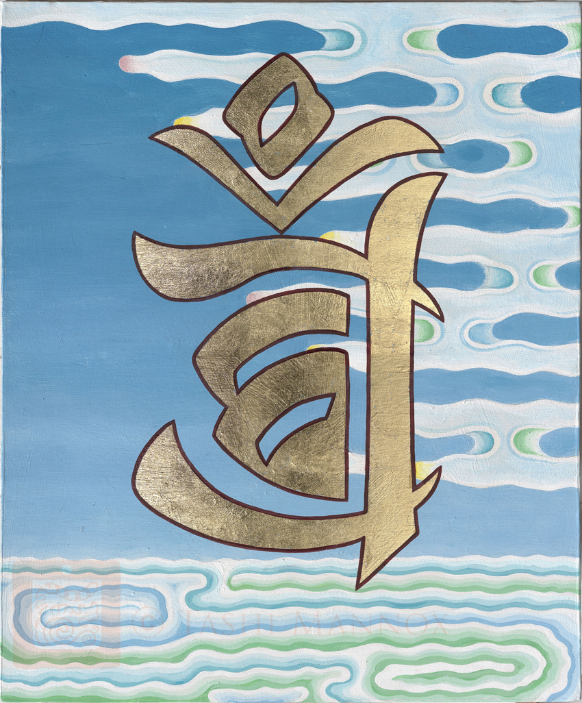 Drawing on a lifetime of study and practice in the rich iconography and wisdom that the Tibetan culture and Buddhist faith offers, my creative enthusiasm as a calligraphic artist is the enjoyment of delivering what is initially born as 'thoughts'. Though of no solidity, thoughts have an amazing ability to hover in the limitless space of 'mind', perhaps held by the glue of emotion and the ever reaffirming 'memory'. Artworks may remain painted and stored in my consciousness for many years, before the right moment comes along to liberate these 'ideas' as an actual art piece.