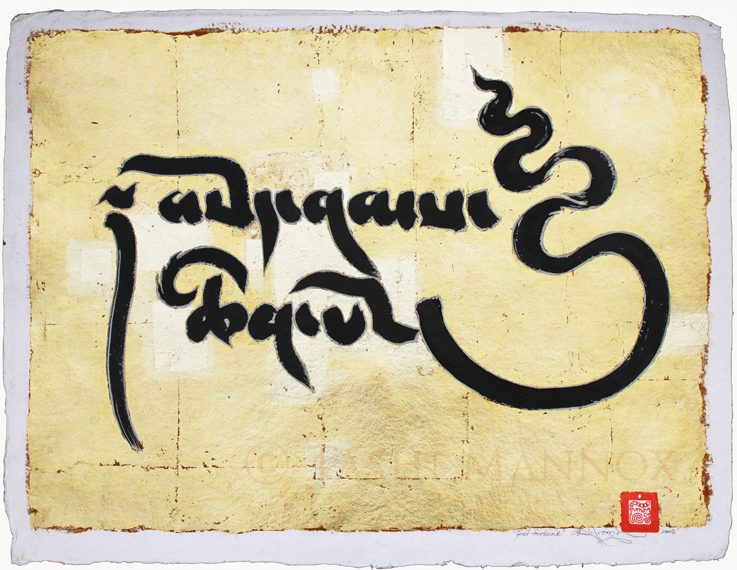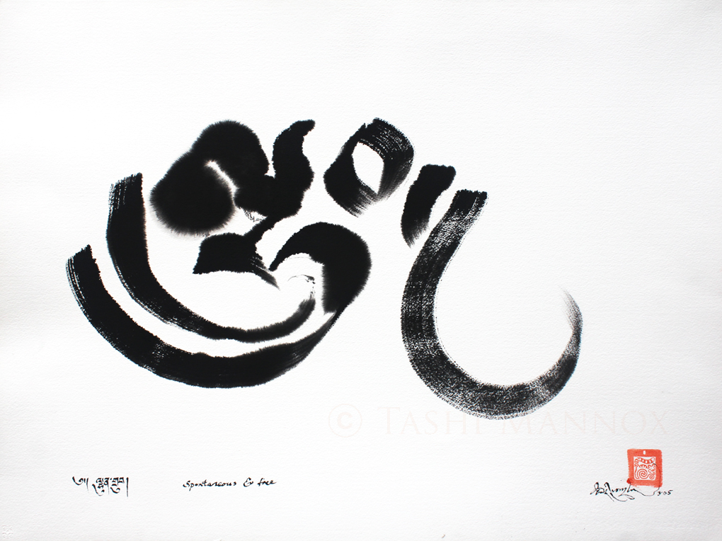 Grounded thoroughly in the pre-modern Tibetan tradition, incorporating modernist visual schemes, and being multi-cultural and postmodern in drawing on other calligraphic lineages such as the spatial awareness proper to Zen calligraphic practice (while preserving the Tibetan core of style), Tashi Mannox's art is an authentic and exemplary instance of an integral calligraphy for our age.