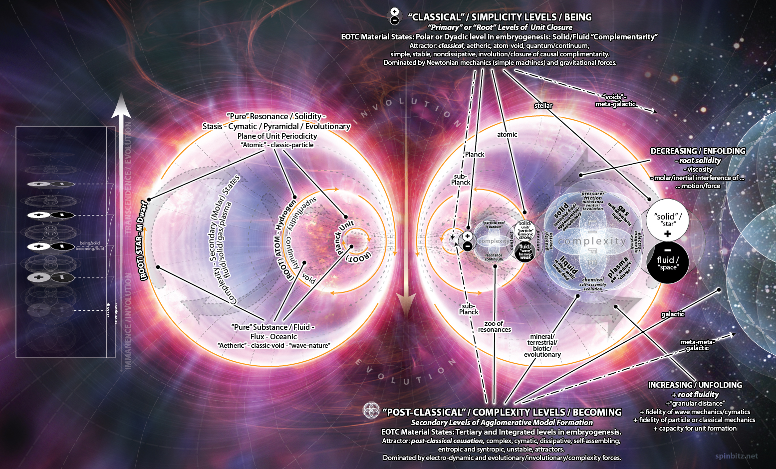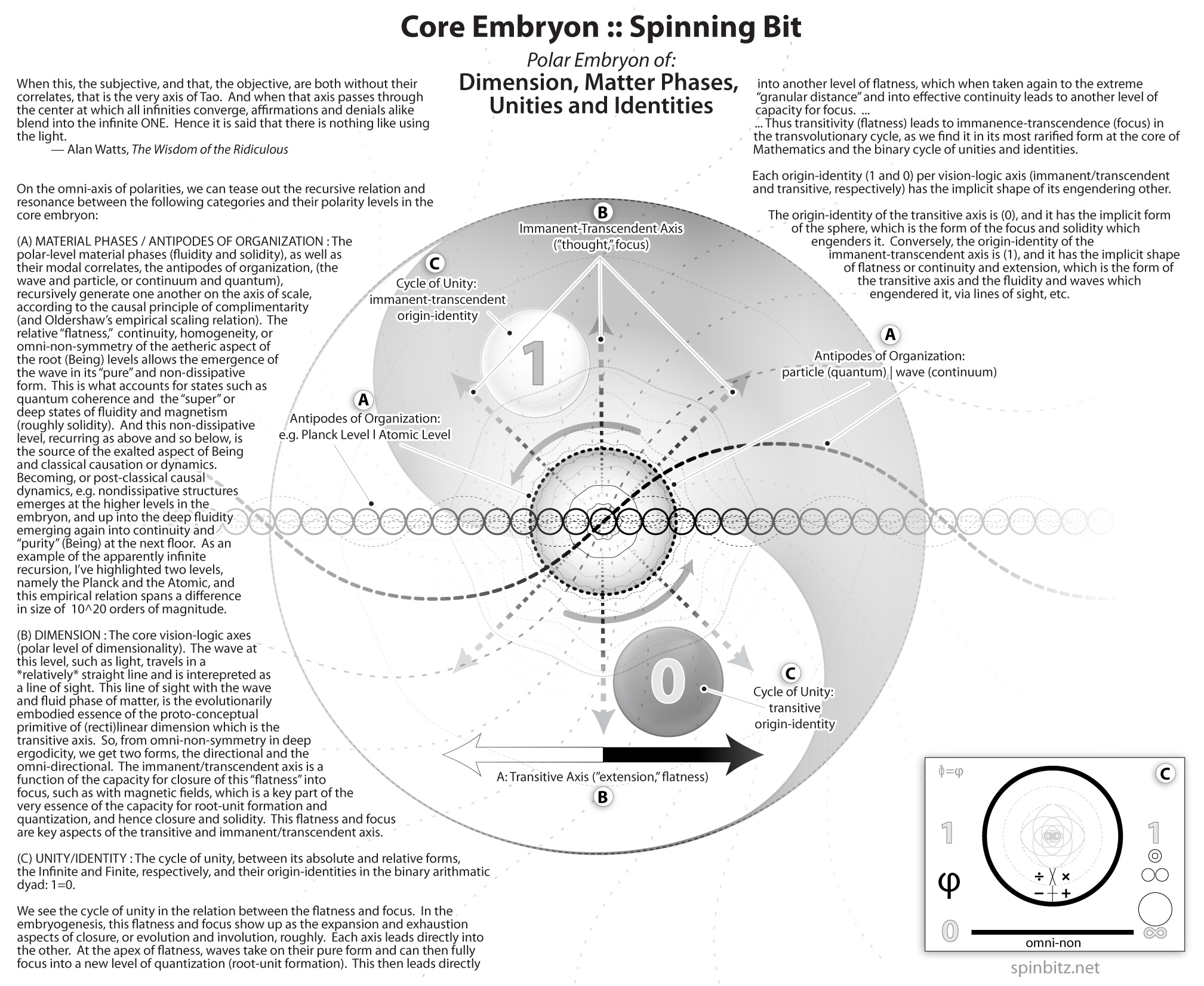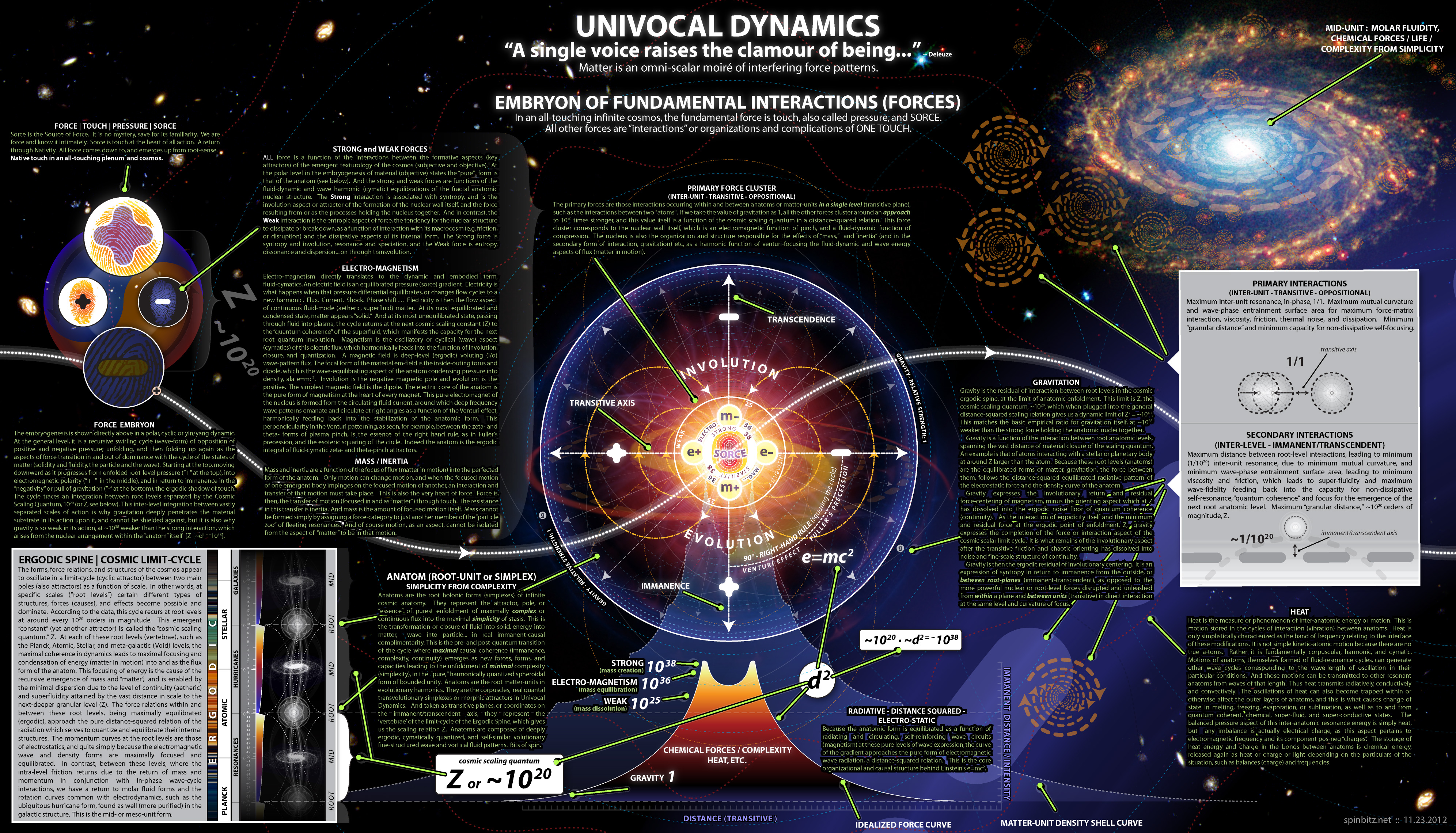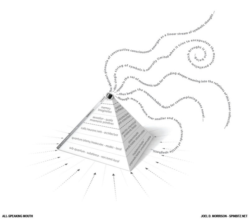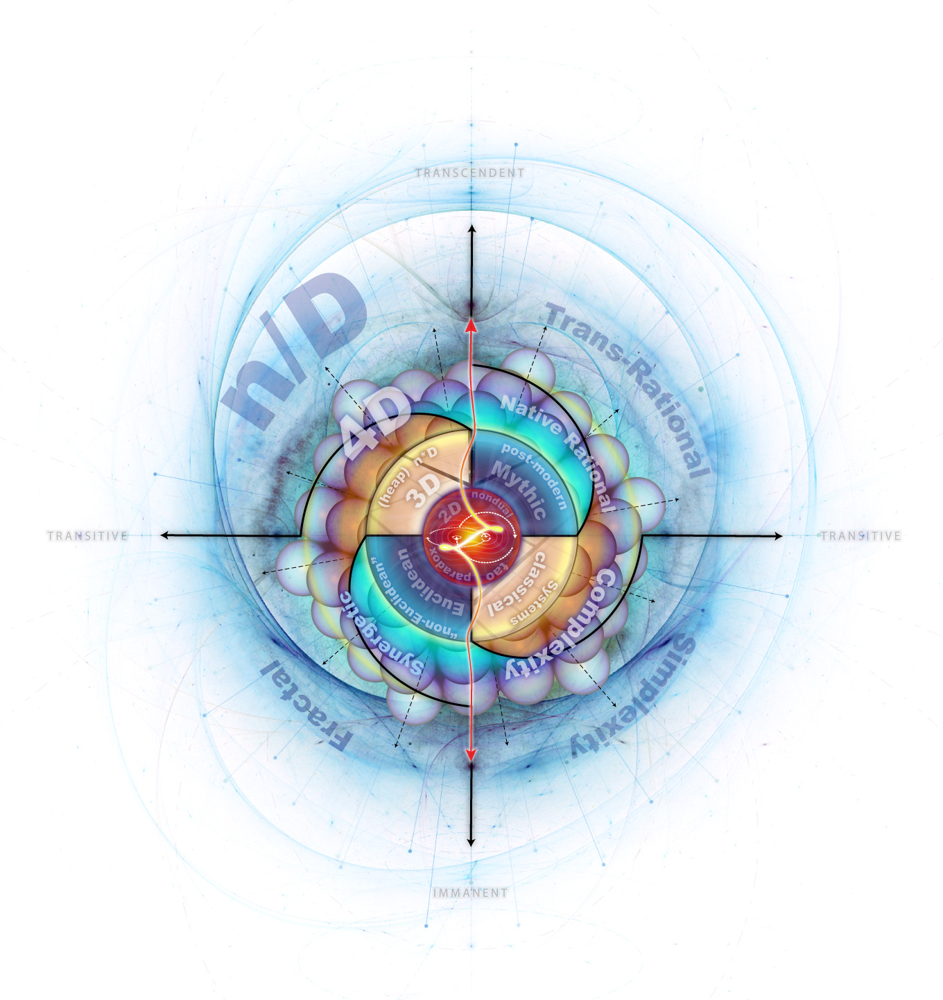 Voraciously sampling the spectrum of human knowledge, my practice in the visual arts—now embodied and everpresent in the subtle hallucinations that form all of experience and conceptuality—formed a scaffolding to help contain and pull out this churning simplex of primitive understanding. In my journey through the linguistic arts, the imagery began to congeal into embryogenetic primitives that would organize and simplify the most seemingly complex and paradoxical of fields.