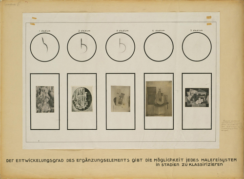 The work of Robert Fludd, an early 17th century English mystic philosopher, developed presentations that exemplify this complexifying of the emblem through inclusion of visual geometries, charts, and spatial coordinates. In the early nineteenth-century, the important German Romantic artist Philipp Otto Runge developed charts of what he called color-spheres, influenced by Goethe’s theories of color and perhaps too by the thought of proto-evolutionist mystic Jakob Böhme. In the early twentieth century, with the flourishing of so many creative modernist art movements and idioms, diagrams and the diagrammatic made their appearance. Kazimir Malevich, the inventor of Suprematism, produced numerous teaching charts – now works of art in their own right – to express the principles of modernist pictorial logics leading up to his own renewal of art of painting. The brilliant Paul Klee, in the wake of the cubist inclusions of all varieties of signs in the pictorial artwork (script, music notes, etc.), seamlessly integrated arrows into what are otherwise abstractive-depictive images.