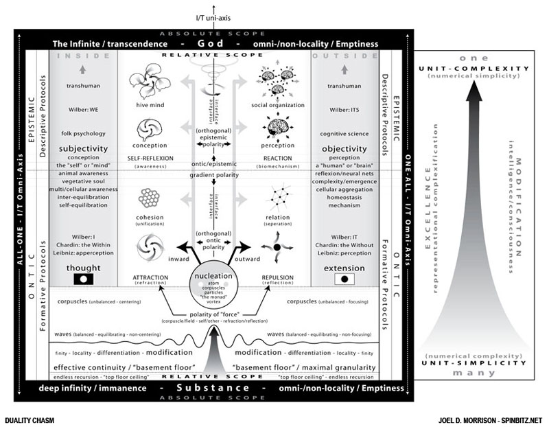 Joel Morrison is both an artist and an integrally-informed philosopher of the interface. Beginning as a trained visual artist, he found his artwork migrating into the exploration of the diagram as a mode of visual art, eventually moving into the domain of philosophy itself. As he reports: