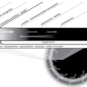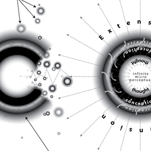 The art remains a key factor in the expression. It is an integral part of a symbiosis; an interface which informs and empowers the logic of the philosophical vision. And often it is through explicit catalysis in the creation of visual diagrams—vision-logic interfaces—that the philosophy itself necessarily unfolds. The linear expression of verbal ideas gains a new perspective through the non-linear and highly parallel expression in a visual form. They feed into and rebound off each other. With visualization, the whole mass of concepts can finally be seen simultaneously, nonlinearly, as one vibrant whole, instead of spaghettified by the linearity of language.... (p. 27).